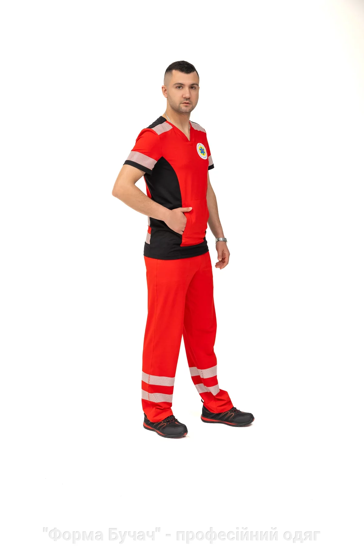 Чоловіча блуза для екстреної медицини розроблений спеціально для фельдшерів, водіїв швидкої допомоги та парамедиків, які працюють у напруженому темпі та потребують легкого, зручного та надійного одягу. Костюм поєднує еластичне трикотажне полотно з вставками з кулмаксу (coolmax) — інноваційного матеріалу, що дихає, швидко сохне і гарантує вентиляцію навіть під час інтенсивної фізичної активності.