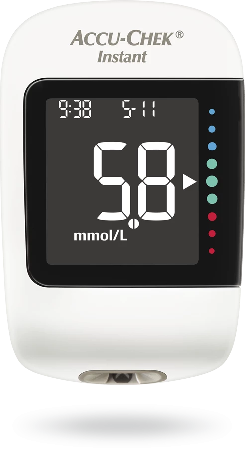 Accu-Chek Instant — інноваційний глюкометр із Bluetooth та підсвіткою дисплея. Забезпечує результат за 4 секунди, має пам’ять на 720 значень та індикатор цільового діапазону для легкого контролю цукру вдома.