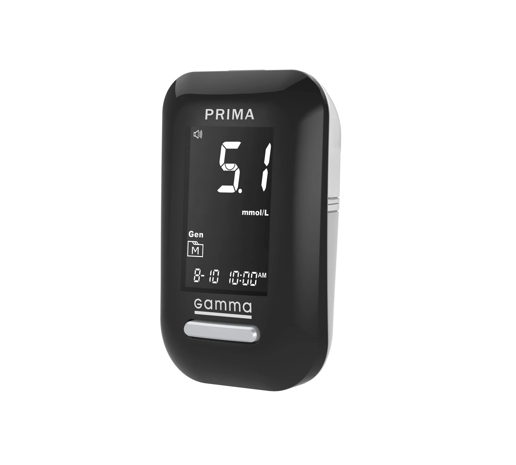 Gamma Diamond Prima — преміальний глюкометр із підсвіткою дисплея та порту. Забезпечує результат за 5 секунд, має пам'ять на 450 значень, функцію попередження про кетони та звуковий супровід для зручності кожного користувача.