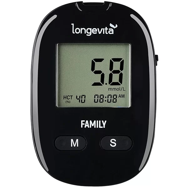 Longevita Family — точний та надійний глюкометр для всієї родини. Забезпечує результат за 5 секунд, підходить для дітей від народження та вагітних, має пам'ять на 360 значень та безстрокову гарантію.