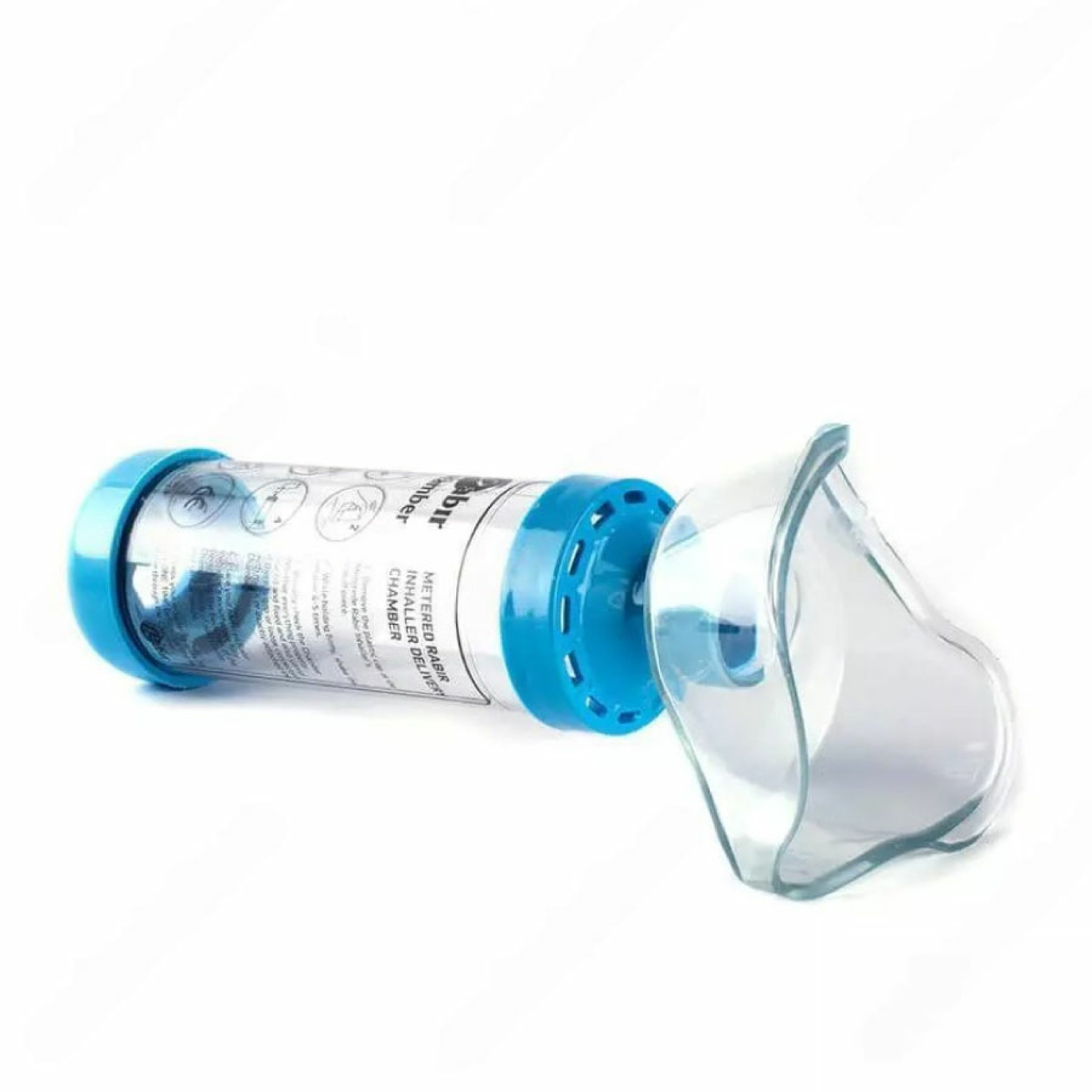 Спейсер Rabir Chamber (синій) — універсальна модель об’ємом 274 мл для дорослих та дітей від 5 років. Забезпечує точне дозування та глибоке проникнення ліків у бронхи, полегшуючи дихання під час нападів астми.