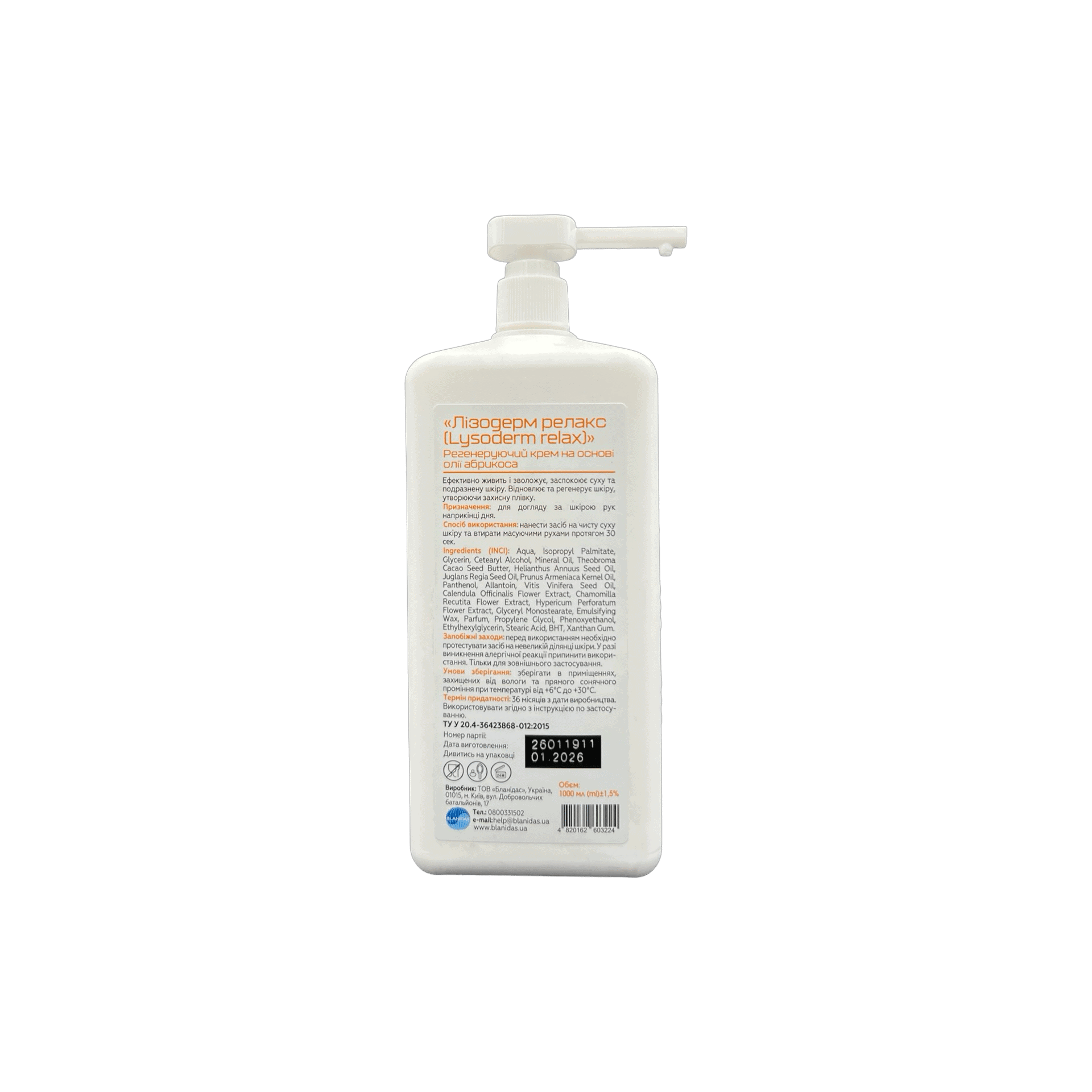 Лізодерм Релакс 1л — професійний регенеруючий крем з олією абрикоса для відновлення подразненої шкіри. Глибоко живить, загоює мікротріщини та знімає стрес після антисептиків. Великий формат ідеальний для медичних установ та б'юті-студій.