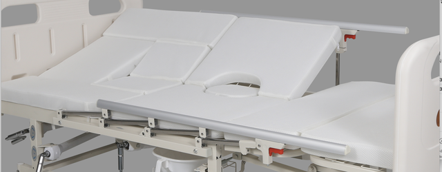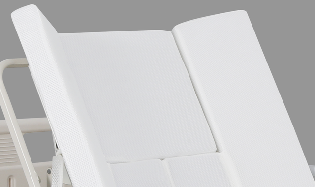Спинка сгибается по краям не позволяет пациенту упасть с кровати в сидячем положении.