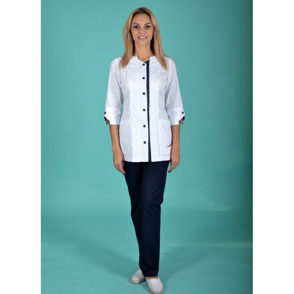 Костюм медичний жіночий білий, т.синій Тіна, Jasmine