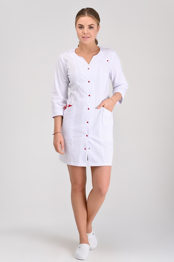 Халат медичний жіночий червоні кнопки Варна, TopLine