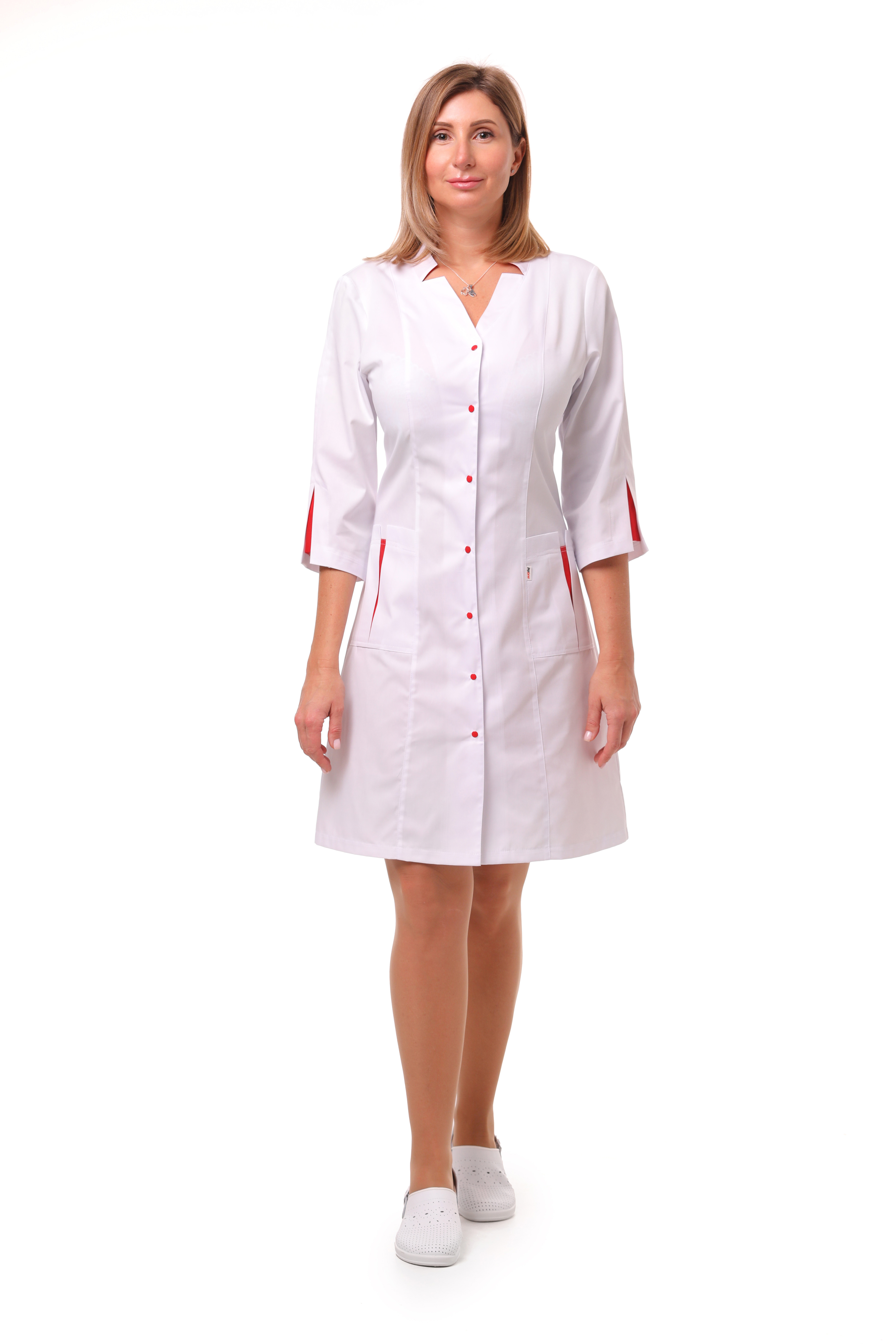 Халат медичний жіночий червоні кнопки Генуя, TopLine