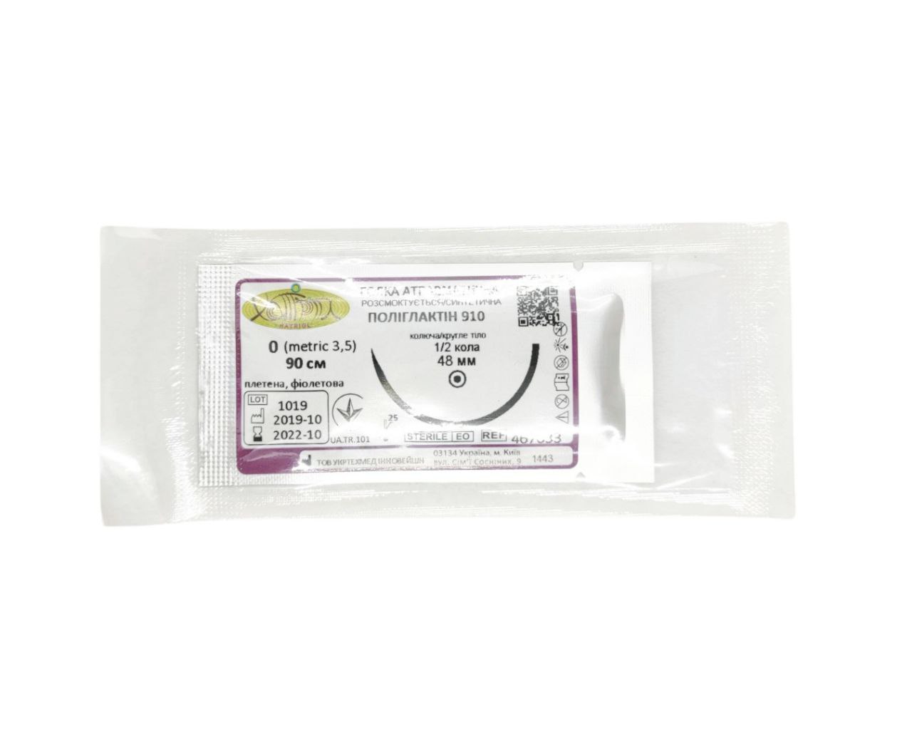 Шовний матеріал ПОЛІГЛАКТІН 910, 0 / 90 см