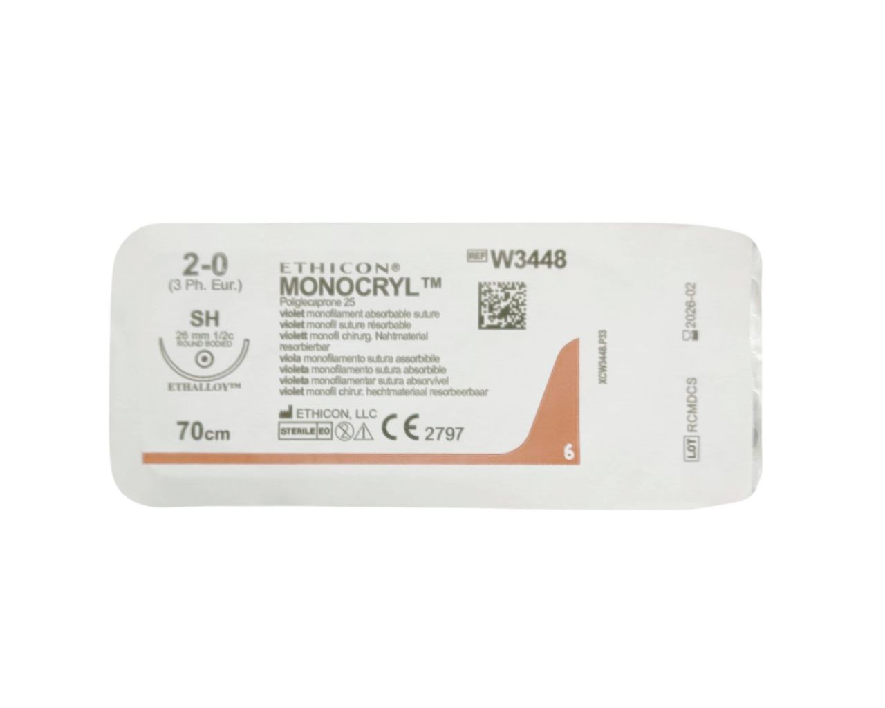 Шовний матеріал MONOCRYL 2.0 / 70 см (W3448), ETHICON®