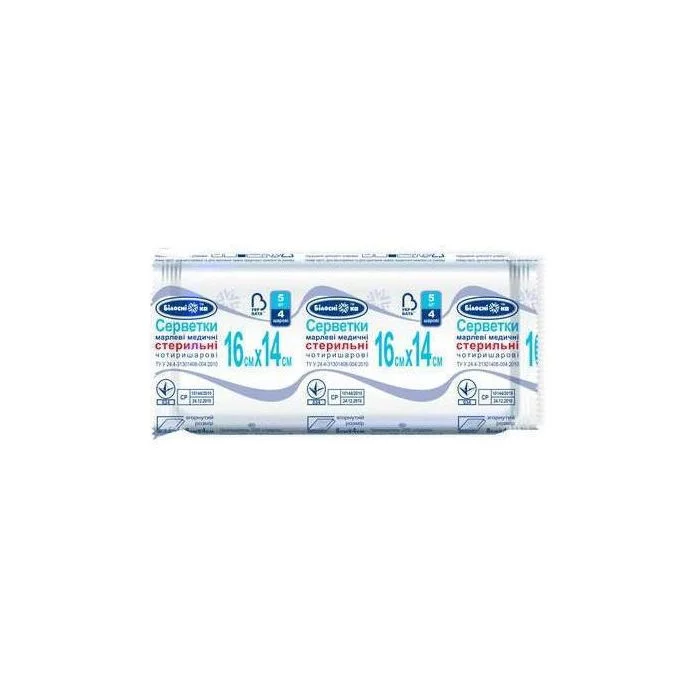 Серветка марлева стерильна №1 16х14 см, Білосніжка™