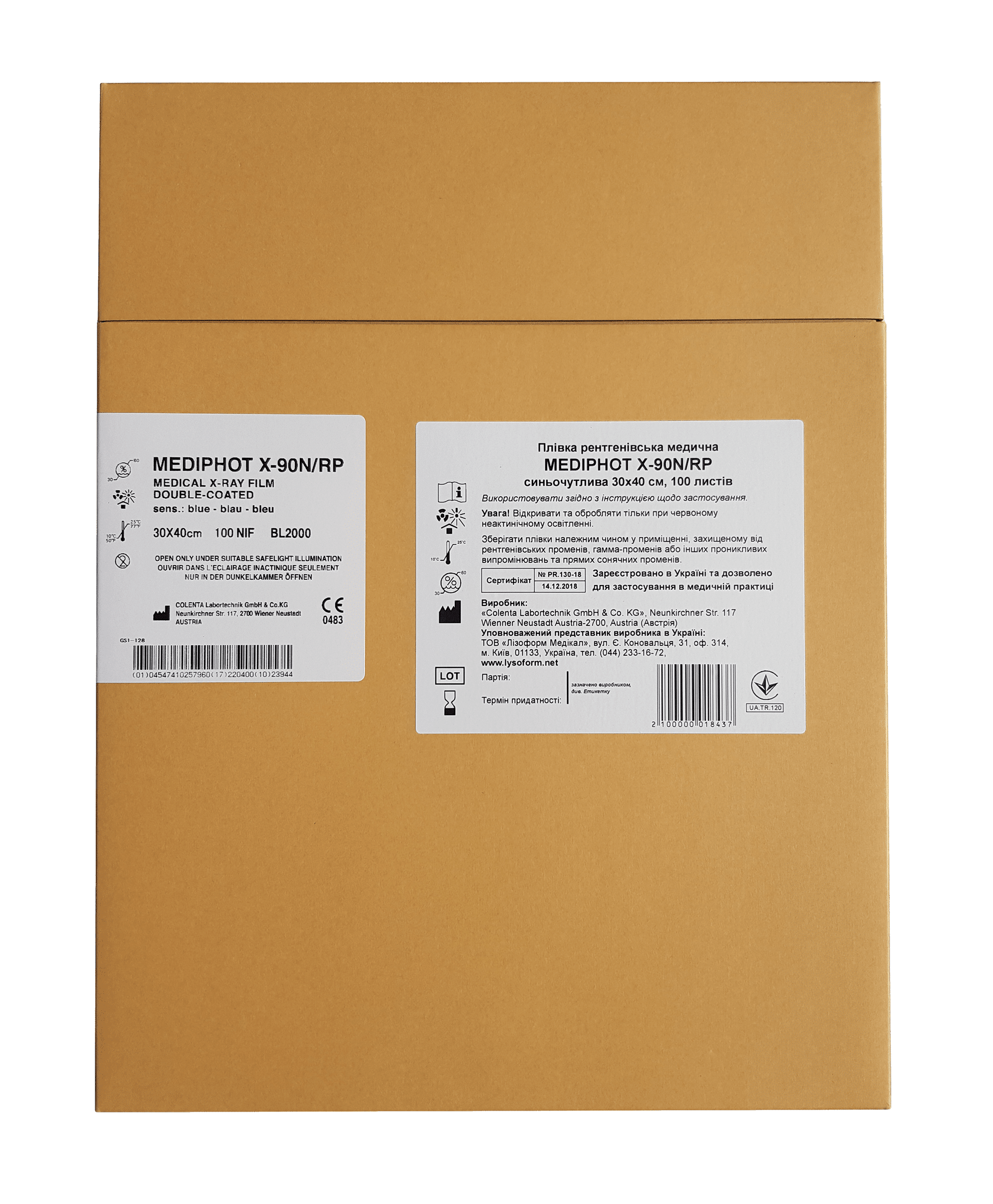 Плівка рентгенівська синьочутлива 30х40 см, 100 листів MEDIPHOT X90N/RP