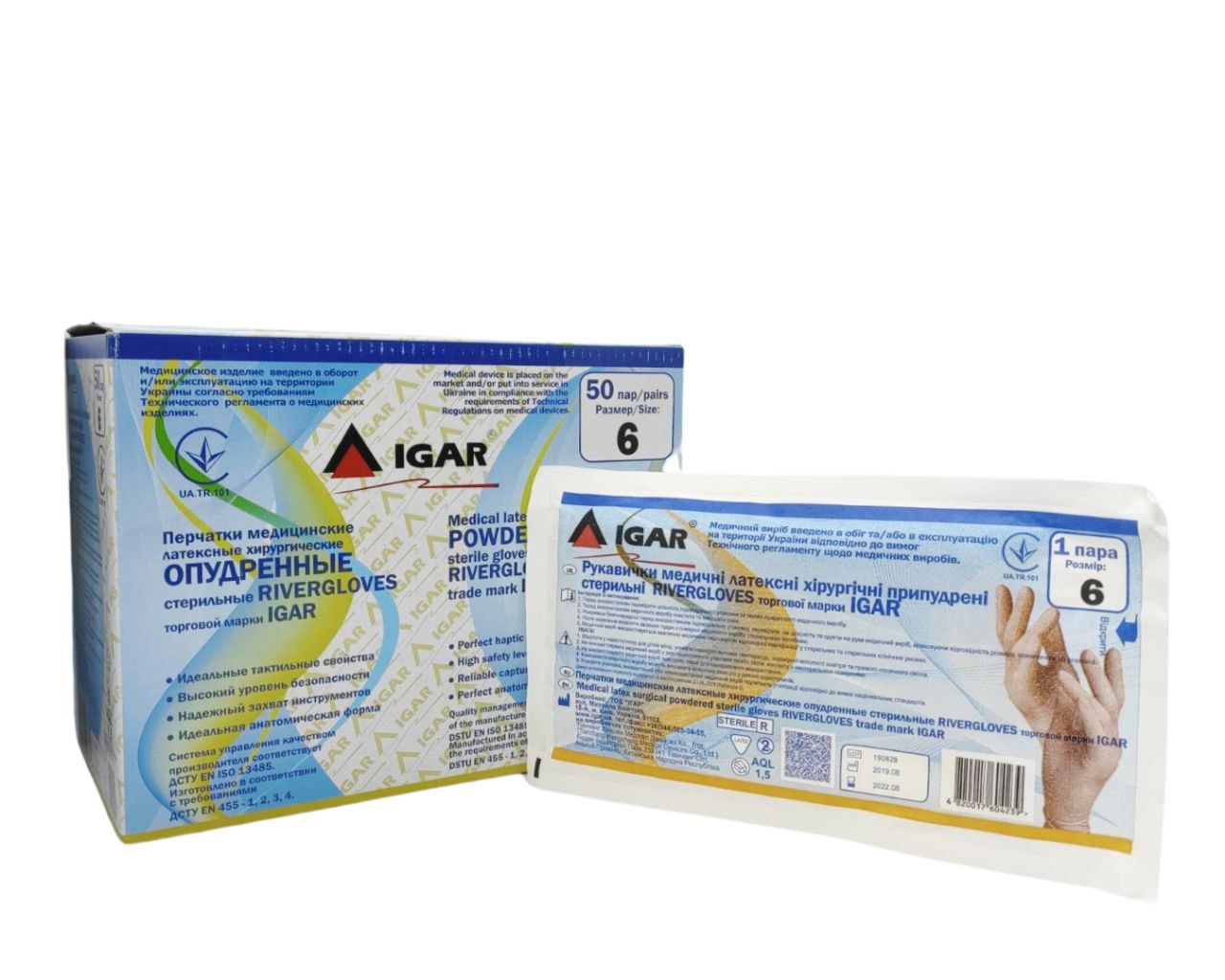 Рукавички латексні хірургічні припудрені СТЕРИЛЬНІ 6.0 IGAR®