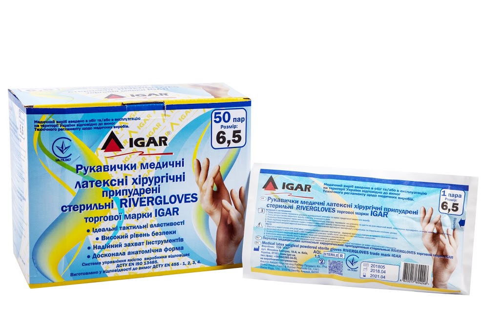 Рукавички латексні хірургічні припудрені СТЕРИЛЬНІ 6.5 IGAR®
