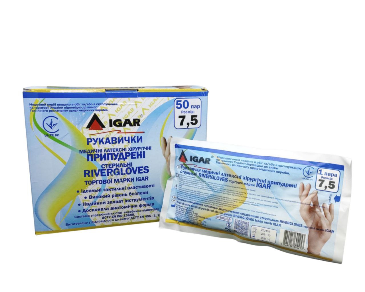 Рукавички латексні хірургічні припудрені СТЕРИЛЬНІ 7.5 IGAR®