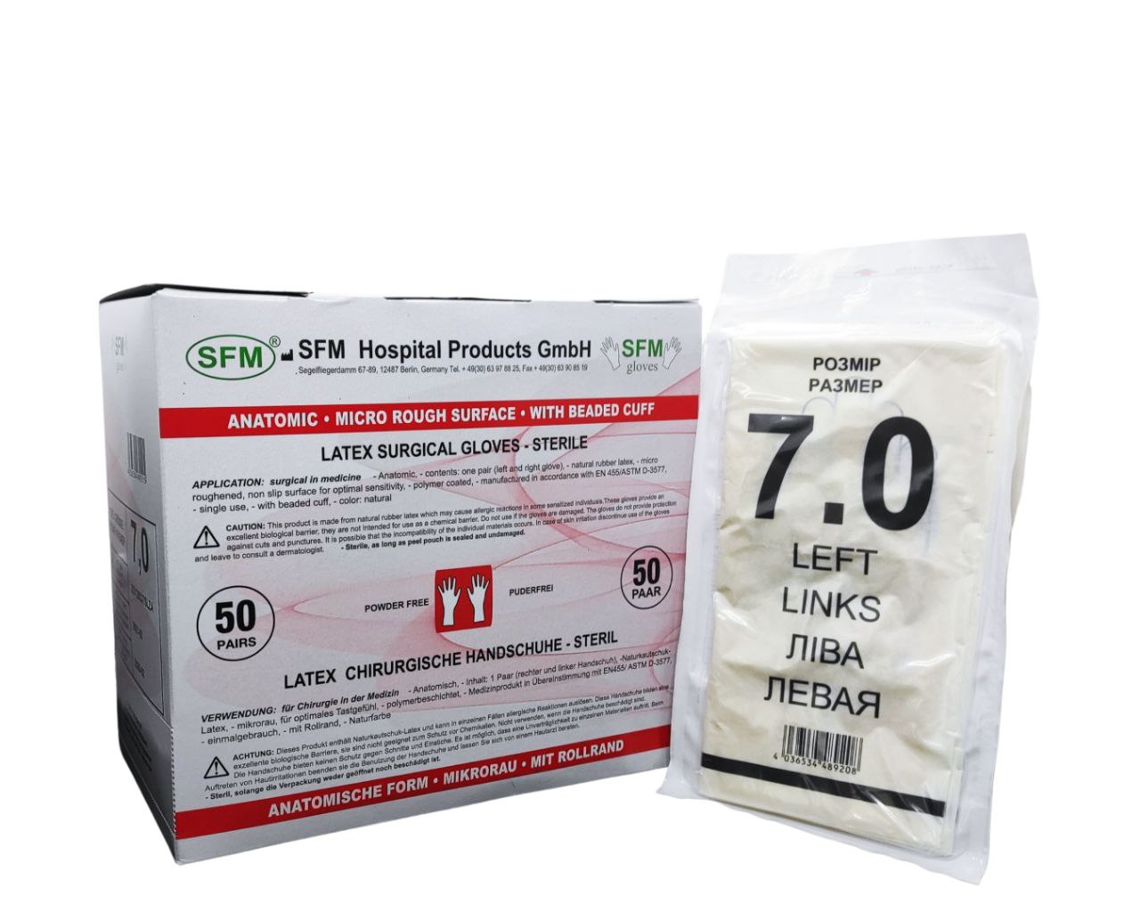 Рукавички латексні хірургічні неприпудрені СТЕРИЛЬНІ 7.0 SFM®