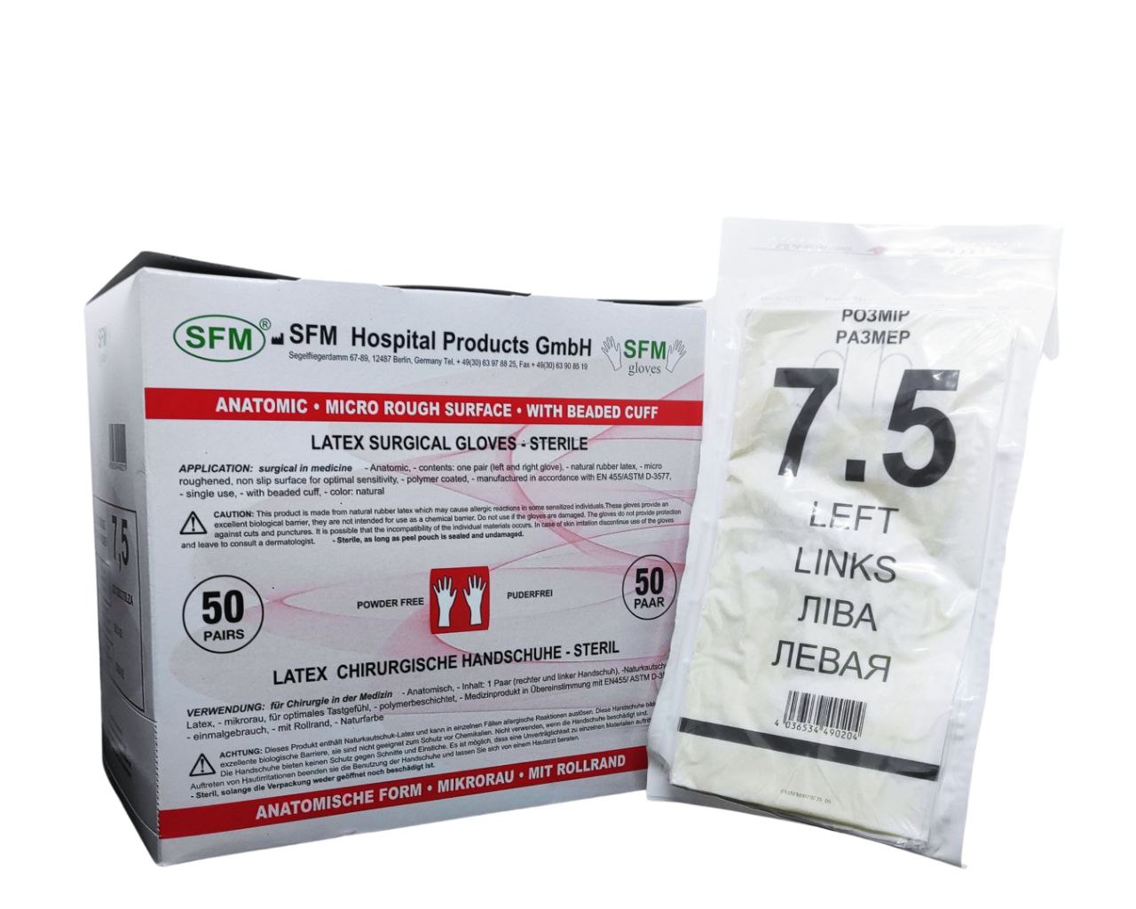 Рукавички латексні хірургічні неприпудрені СТЕРИЛЬНІ 7.5 SFM®