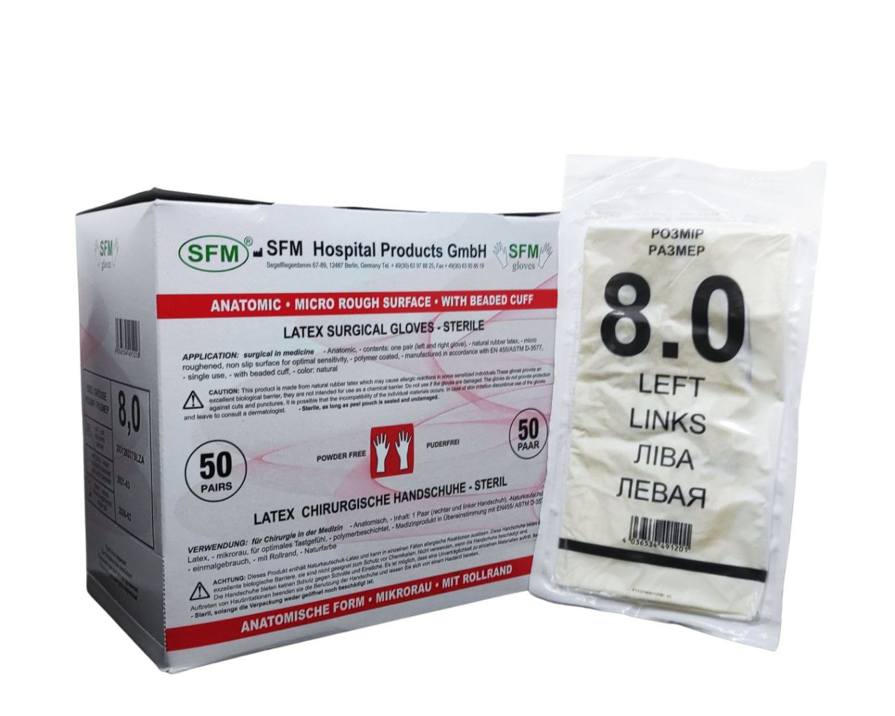 Рукавички латексні хірургічні неприпудрені СТЕРИЛЬНІ 8.0 SFM®