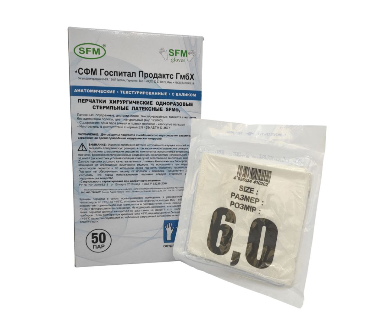 Рукавички латексні хірургічні припудрені СТЕРИЛЬНІ 6.0 SFM®