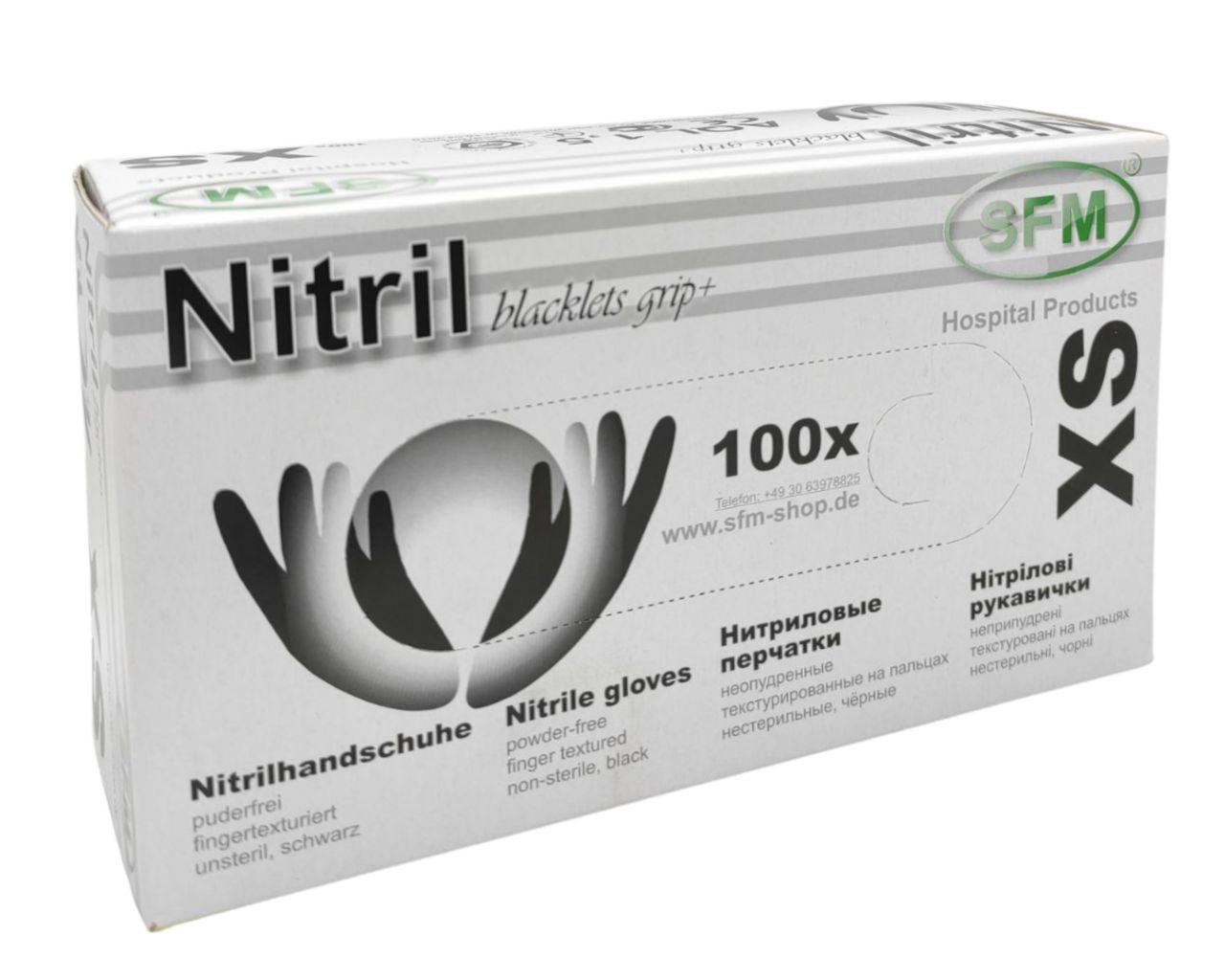 Нітрилові рукавички чорні SFM® XS, 50 пар