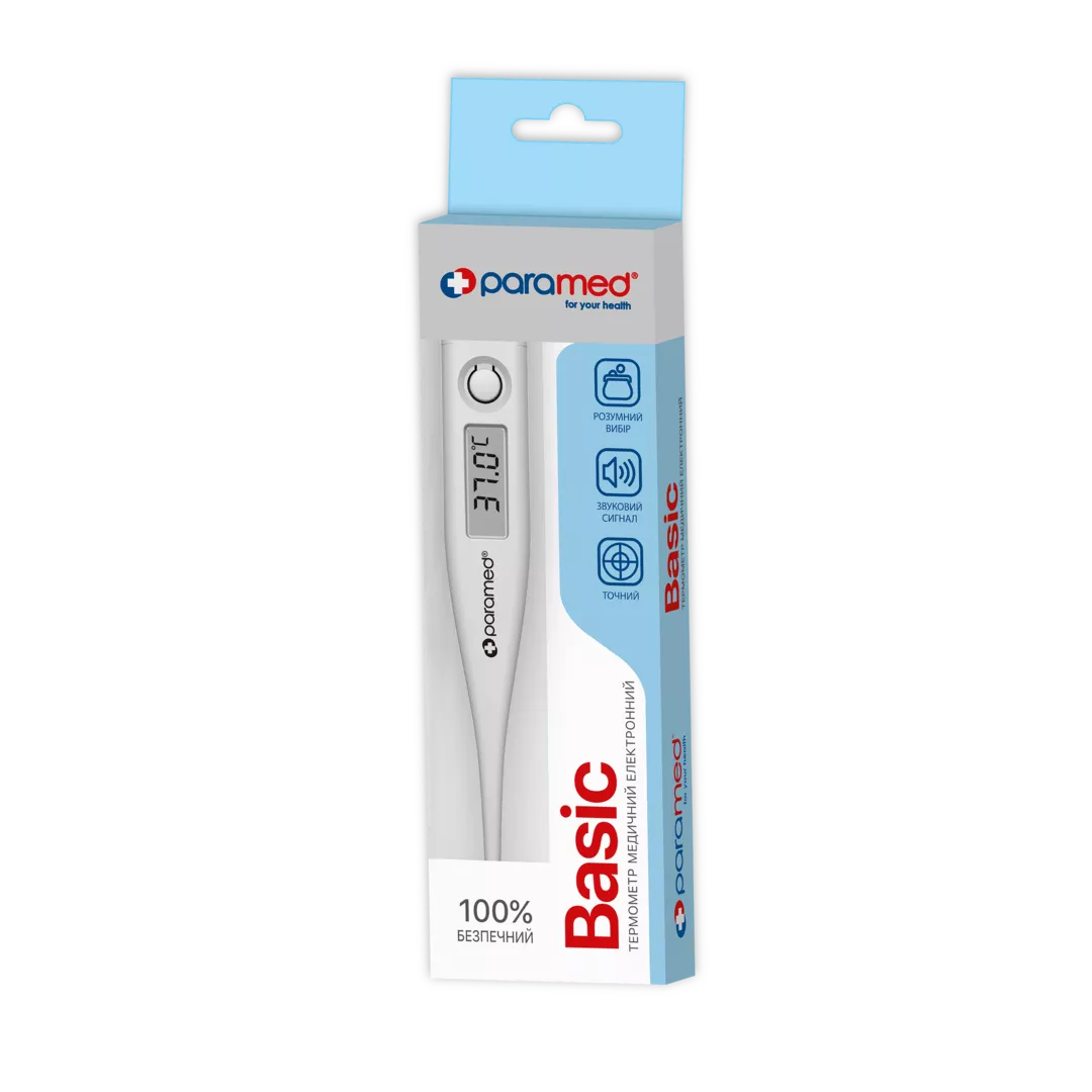 Paramed Basic — найдоступніший цифровий термометр у лінійці бренду, створений для простого та безпечного контролю температури. Має класичний дизайн, міцний футляр у комплекті та офіційну гарантію.
