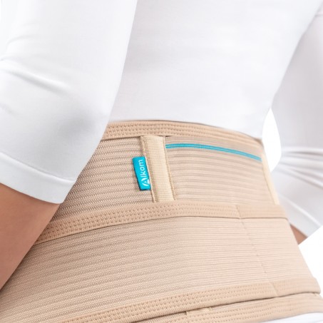 Бандаж до- та післяпологивй 2012 alkom - упевнено фіксує поперековий відділ хребта: посилена ребрами жорсткості спинка створює опірний каркас для м’язів спини та знімає навантаження з поперека, усуваючи дискомфорт. Утворює для животика своєрідну поличку, не дозволяє йому надто опускатися й рятує м’язи та шкіру живота від надмірного розтягнення. У разі застосування виробу в післяпологовому періоді сприяє активному скороченню м’язів матки, поверненню розташування органів черевної порожнини до норми та скороченню термінів відновлення жінки після пологів.