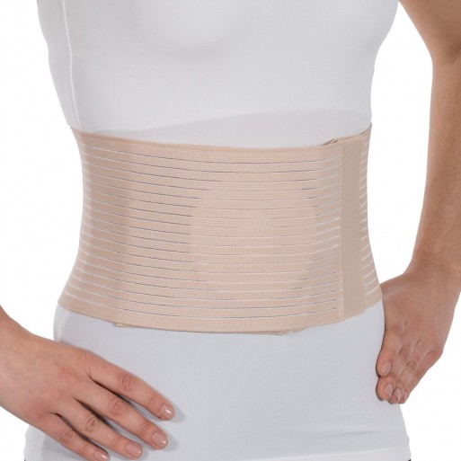 - Утримує черевну стінку на місці, що знижує ризик ускладнень перед операцією;