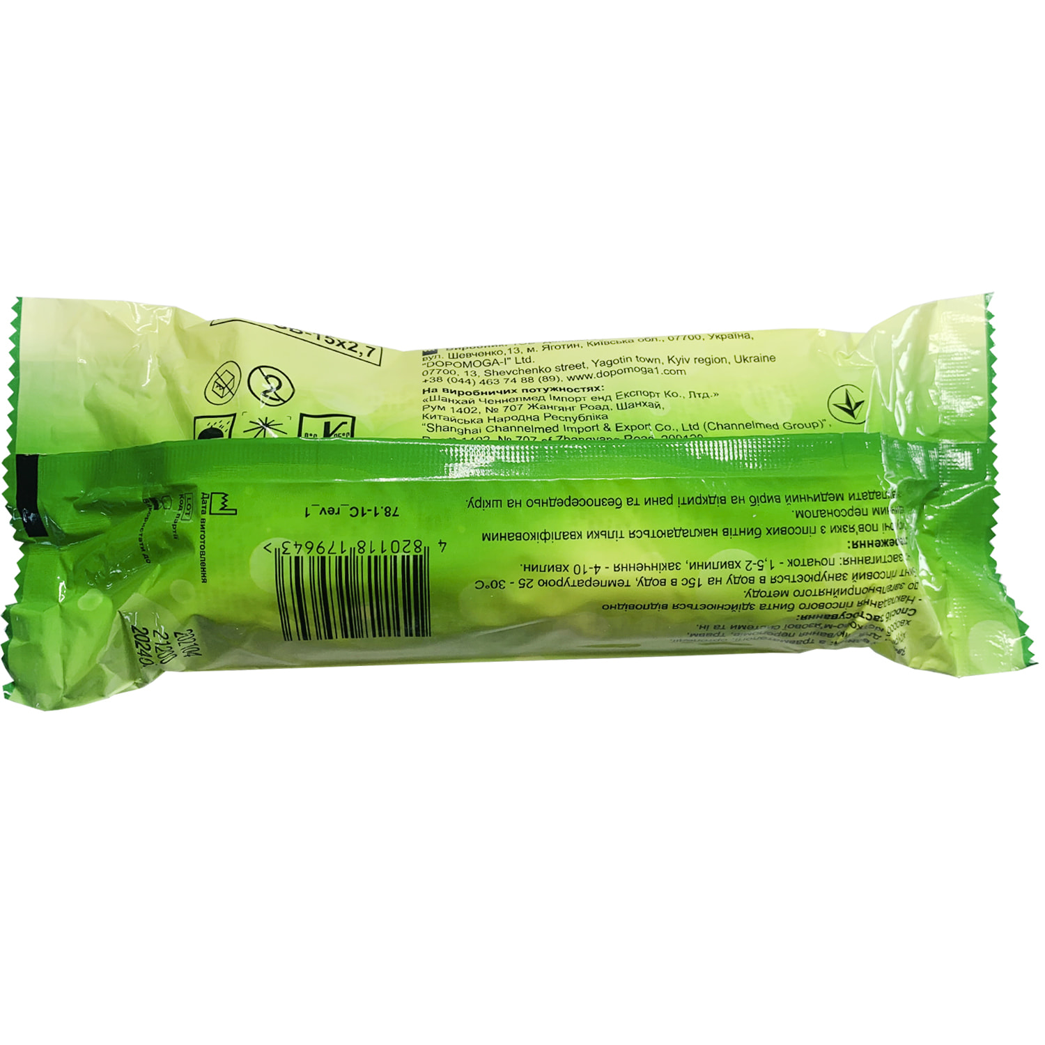 - Кожен бинт індивідуально упакований у водонепроникний герметичний пакет;