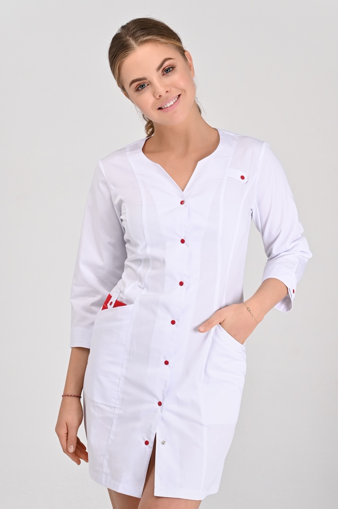 Халат медичний жіночий червоні кнопки Варна, TopLine