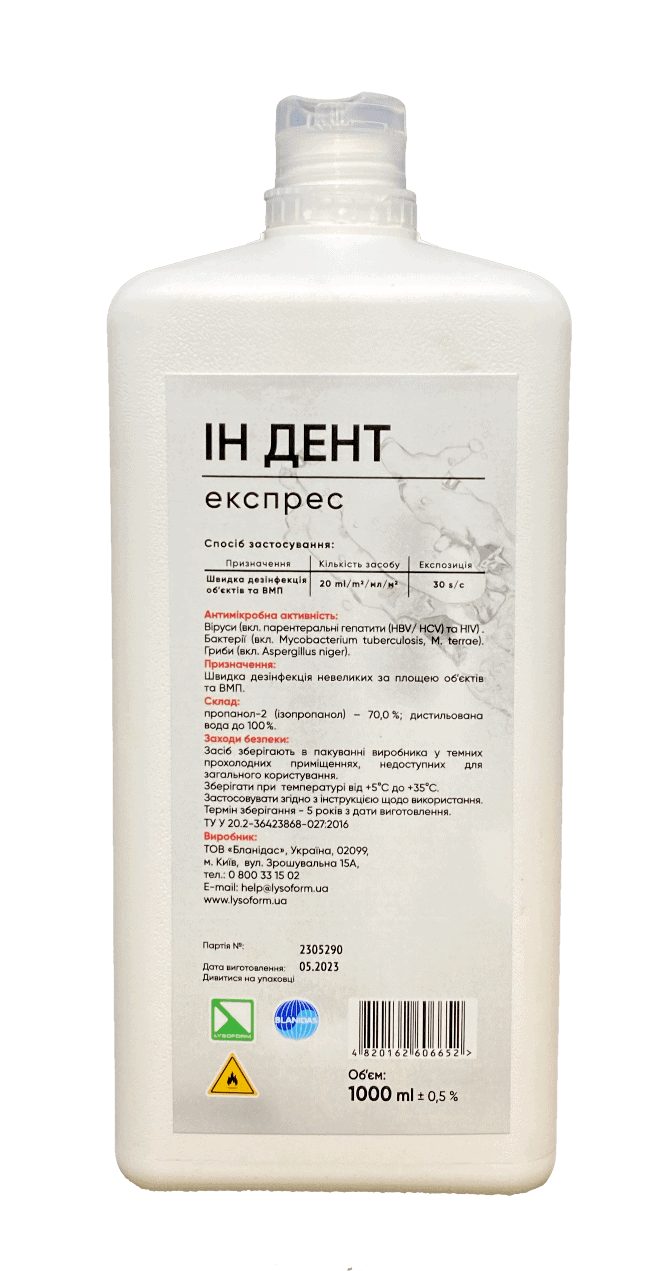 Універсальний концентрований дезенфікуючий засіб для швидкої стирилізації малих за об'ємом стоматологічних інструментів та поверхонь.