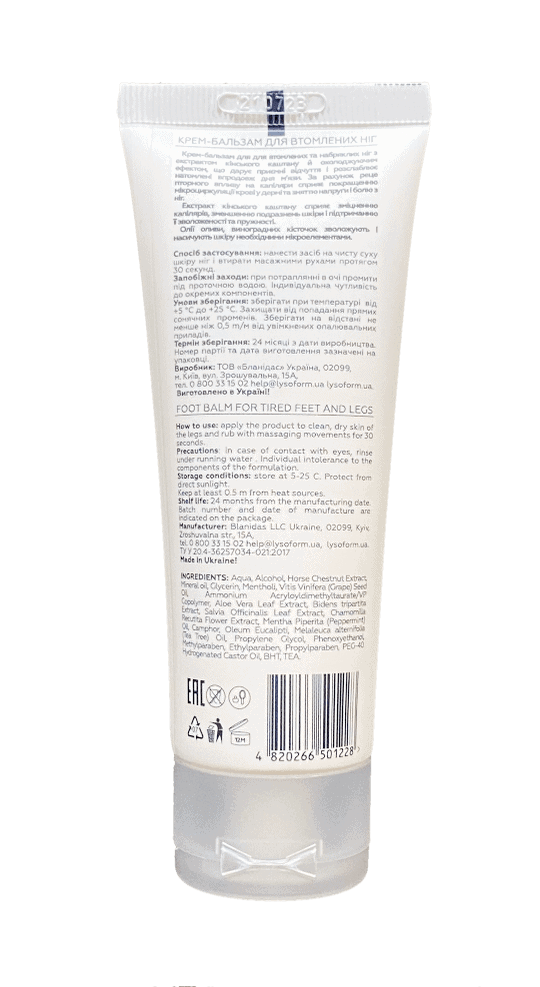Крем-бальзам для втомлених ніг 75 мл, LIRIO MED