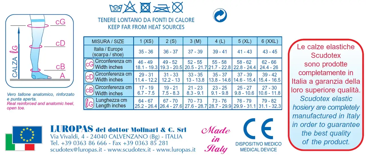 Компресійні панчохи з відкритим миском ІІ класу 833 ScudoTex - створюють градуйований тиск на ногу, що дозволяє зменшити діаметр вен, відновити роботу венозних клапанів і нормалізувати венозний кровоток. Усувають застій рідини у кінцівках (усувають набряки). Знімають біль і втому в ногах. Зупиняють розвиток захворювань вен. Зменшують прояви варикозу. Підійдуть для носіння як жінкам так і чоловікам.