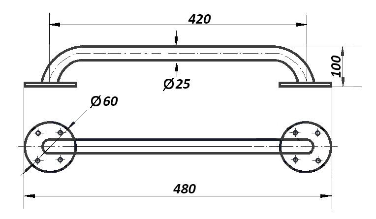 - Поручень виконаний з гнутого сталевої труби діаметром 25 мм.