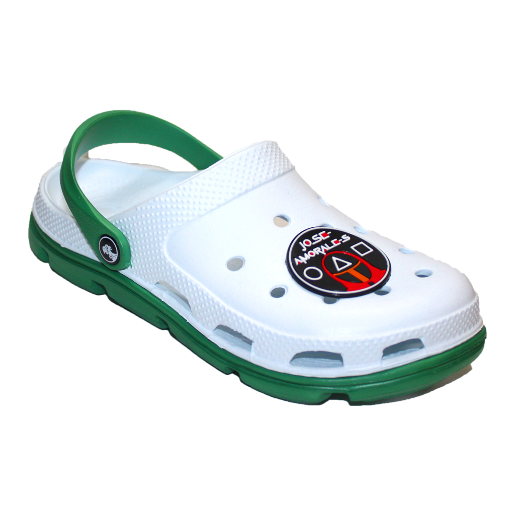 Сабо жіночі біло-зелені "Гра в кальмара", Jose Amorales