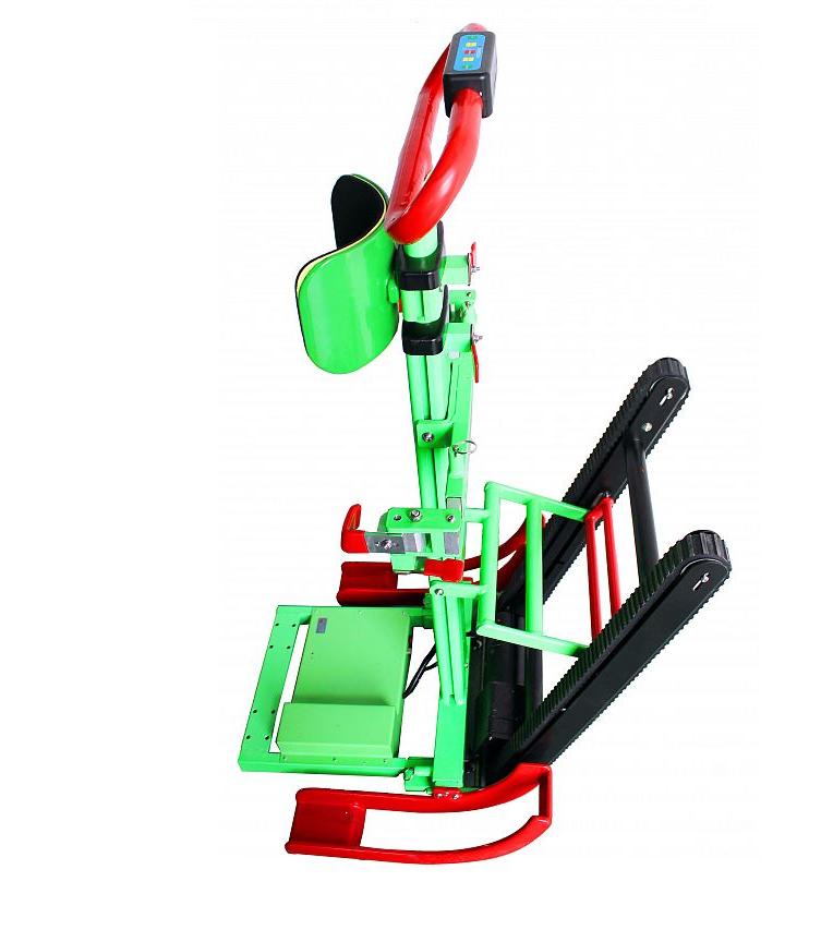 Електричний підйомник гусеничний 11D призначений для транспортування по сходовому майданчику паралізованих пацієнтів. Унікальна особливість цього підйомника в тому, що його можна використовувати разом з інвалідним візком. Легко працює на підйом і спуск по сходах. Конструкція гусениць робить зручним і комфортним рух по сходинках. Підйомник можна використовувати як у медичних установах, так і в домашніх умовах. Надійний і простий. При експлуатації, не потрібно володіти спеціальними знаннями або великою фізичною силою. Легка і міцна конструкція, підйомник виготовлений з високоміцного алюмінію. Компактно складається для перевезення. Підходить для будь-якого розміру ручної інвалідної коляски. Ширина кріплення для коляски регулюється в діапазоні 40-60 см.