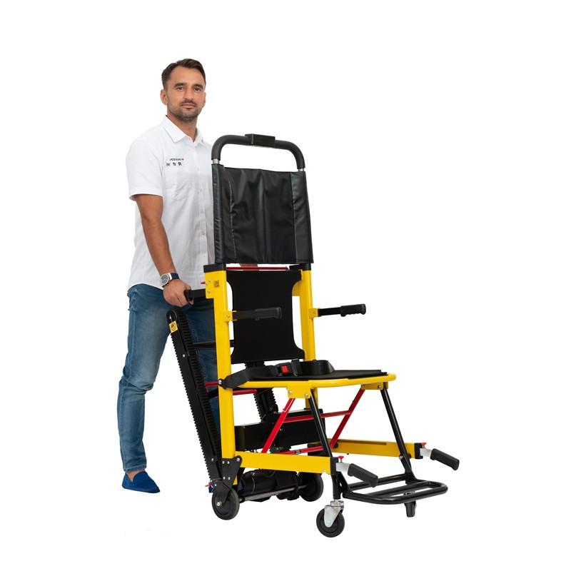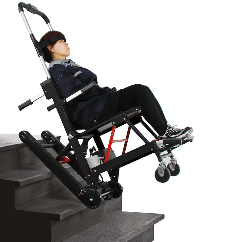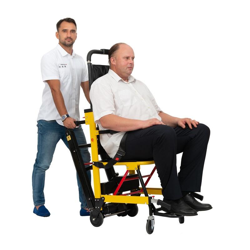 Електричний гусеничний підйомник для інвалідів і літніх людей. Призначений для переміщення паралізованих пацієнтів по сходах. Унікальна конструкція гусениць робить зручним і безпечним підйом або спуск. Зроблений з високоміцного алюмінію підйомник не важкий, легко і компактно складається. Для використання сходового підйомника не потрібно спеціальної підготовки або великої фізичної сили.