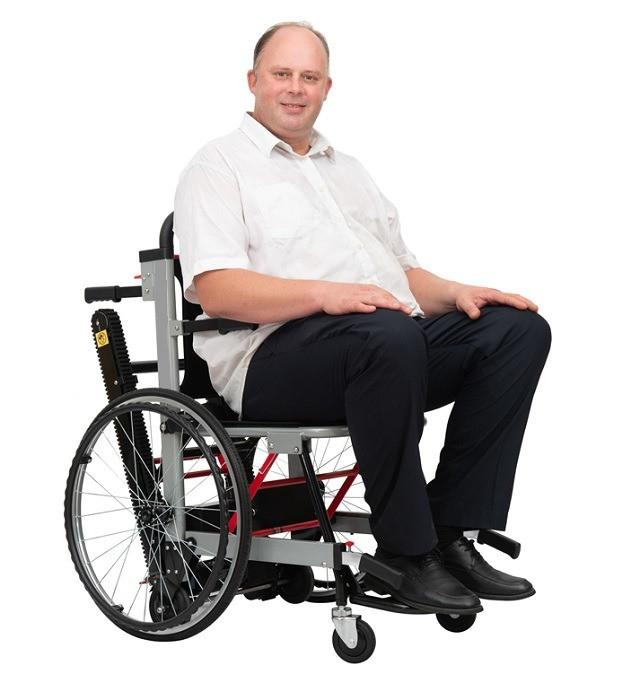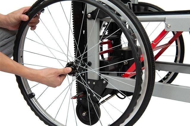 Отличительна черта этого лестничного подьемника - возможность снять или поставить активные колеса.
